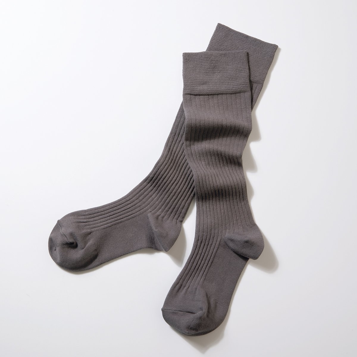 くい込みゼロで安心の着用感。コンプレッションソックス(コットンリブタイプ)ミディアムグレー¥3,960(マエエ)