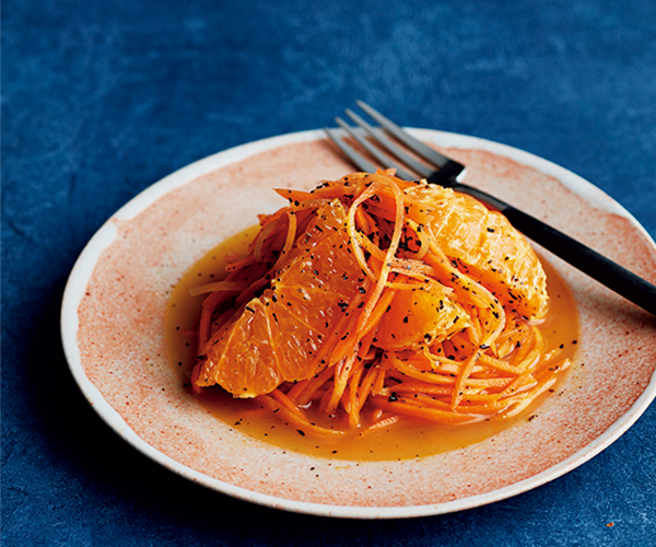- にんじんはせん切りにする。塩を加えてもみ、しんなりするまで10分程おく