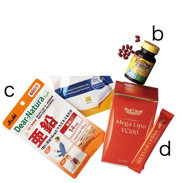 食材の栄養価が低下している昨今、食事だけでは充分な栄養をとれないのが現状。抗酸化作用やヒスタミン対策などを意識して、サプリメントを取り入れて。