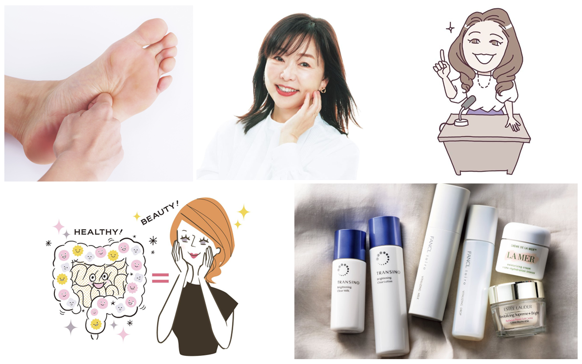 「以前ポーラが行った研究では、筋肉量と顔のシミを数値化したときに、筋肉量が多い女性ほど顔のシミの数が少ないことが明らかになりました。さらに、筋肉から分泌されるホルモンに似た生理活性物質マイオカインのひとつ、“マイオネクチン”にシミの原因となるメラニン生成を抑える働きがあることが判明。また、同じ年齢でも、老けて見える人、若く見える人の写真を無造作に並べ、色んな人に何歳に見えますか? というアンケートでは、真皮の厚みが厚い人ほど、若く見られるということがわかりました。そのほか、カナダの研究グループより、自転車運動をした高齢者の皮膚の代謝が改善されたことから、有酸素運動により、新しく皮膚をつくるという刺激が高まったという報告がありました。