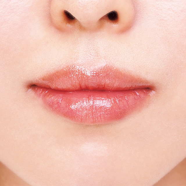 オレンジはグロスのツヤよりもラメの光でぷっくりと見せて、ナチュラルに存在感を底上げ! ちらちらラメが輝くシアーな発色。初々しい花びらのようなピュアオレンジ。みずみずしいツヤと透明感あふれる発色で厚唇にニュアンスをプラス。ピタッと密着して卵にキスしても色移りほぼナシ。