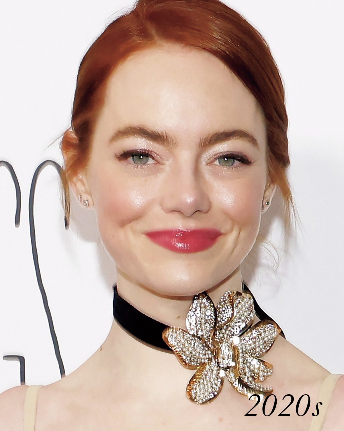 木津 この眉年表を作るとき、最初は2020年代を外していたんだけど、一昨日くらいに追加したんです。今年のゴールデングローブ賞で主演女優賞を受賞し、アカデミー賞でもノミネートされているエマ・ストーン。『哀れなるものたち』という映画のなかで、眉を太く濃く描いて主張させてるんだよね。新生児の脳を移植された女性の成長の物語なんだけど、意志をもって生きる女性を眉で象徴させているのが見てとれる。#Me Too運動をきっかけに、SRHRといった女性の権利がまだまだないがしろにされていることに女性たちが声を上げ始めている。そんな時代にふんわり眉ではなく、細くキリッとでもない、新しい太眉の時代が来ているのかな、と感じますね。