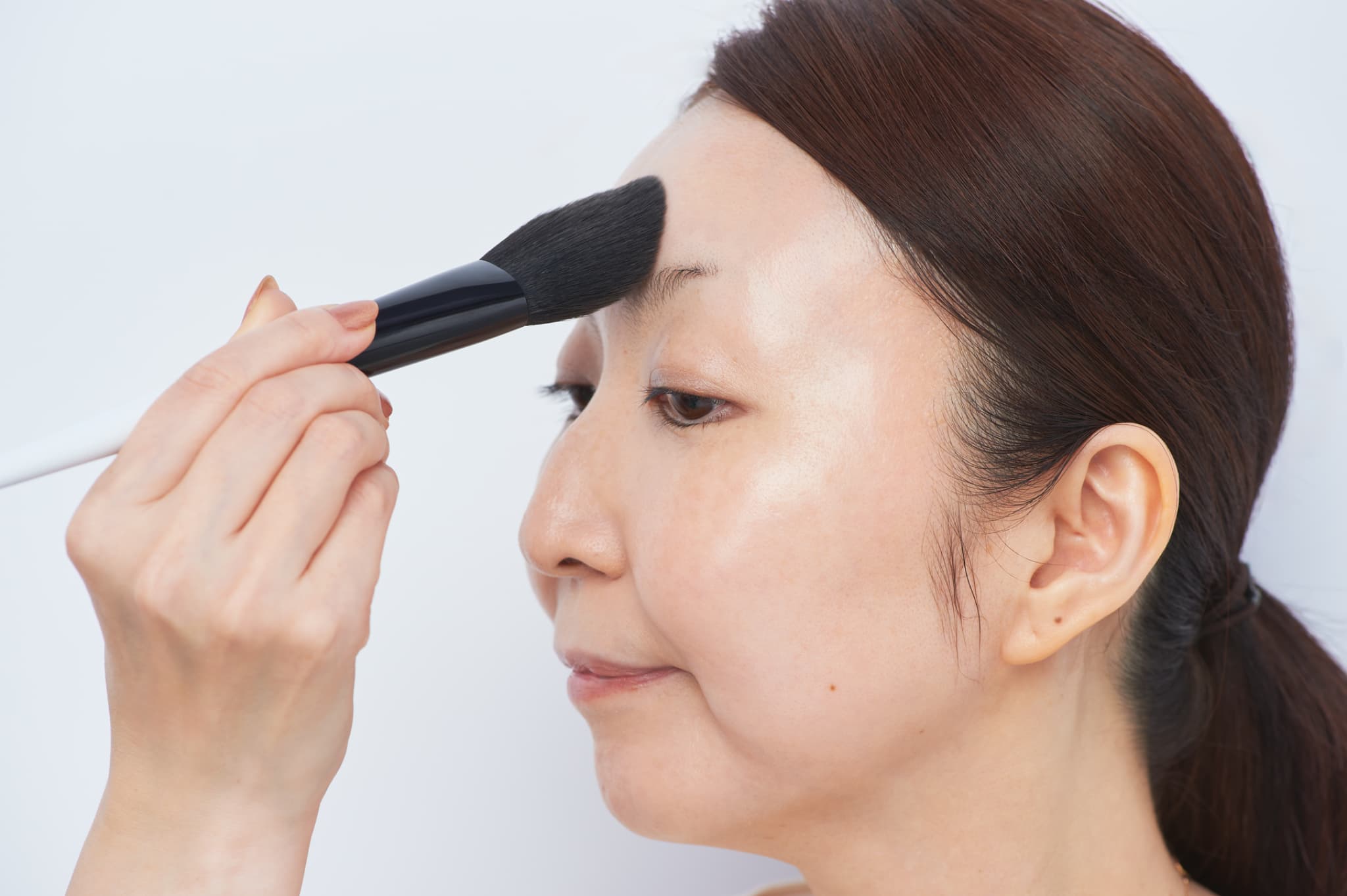 Step5 ブラシで表面だけをサラリと仕上げ、内側の発光感を消さないパウダーの引き算を