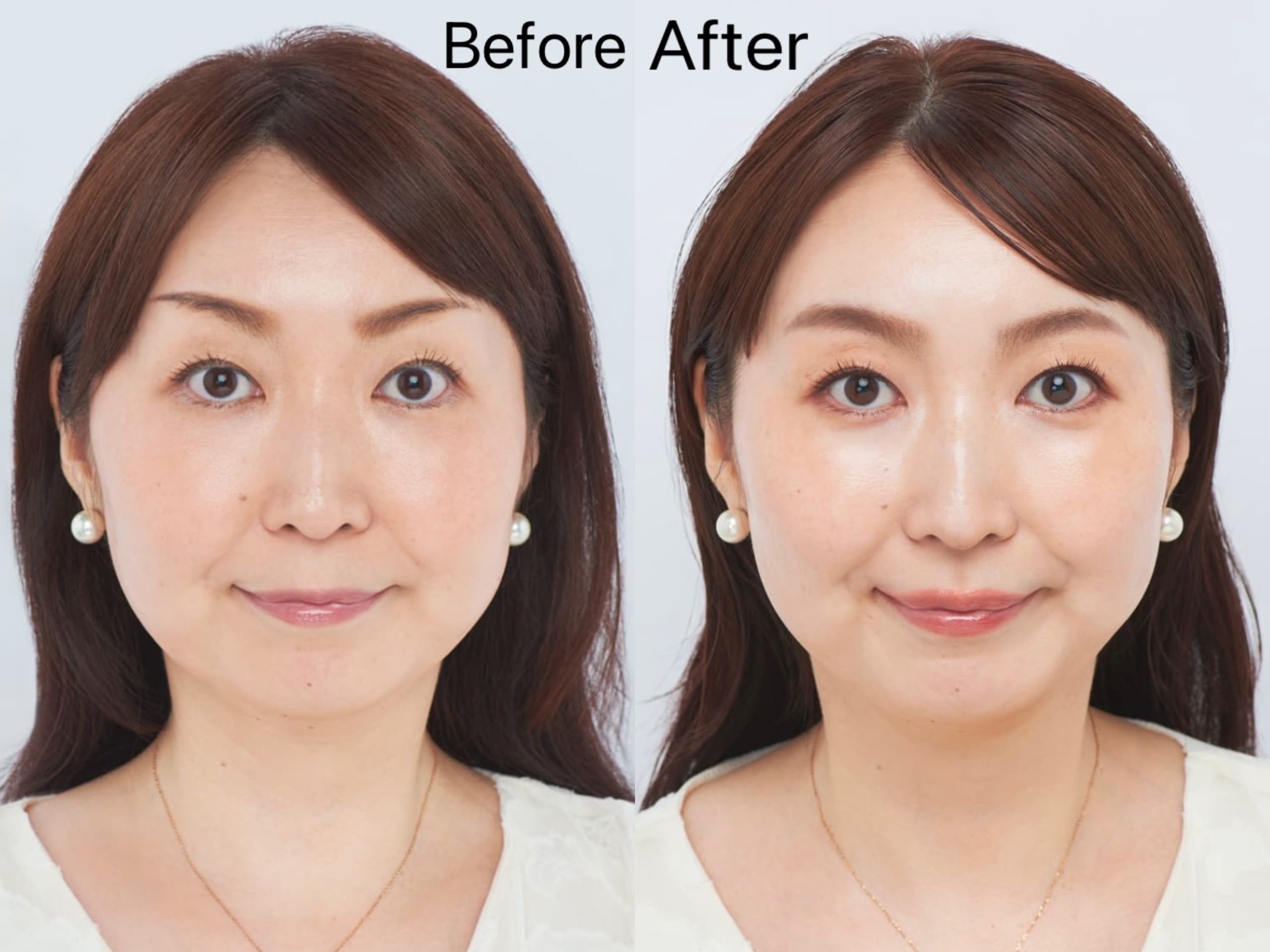 仕上げのパウダーは、ブラシにたっぷり含ませた後、一度ティッシュオフするのが鉄則。 顔の中心からスタートし、小鼻、顎、フェイスラインへと、付け足さずに一気にすべらせます。のせすぎないことで、内側の発光感を活かしたまま、涼やかな質感が完成します。