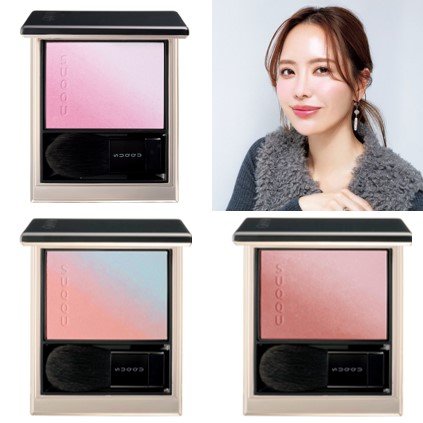 わずかに渋みを含む透けレッドのチークと、パールたっぷりのミルキーピンクのハイライターがひとつに。