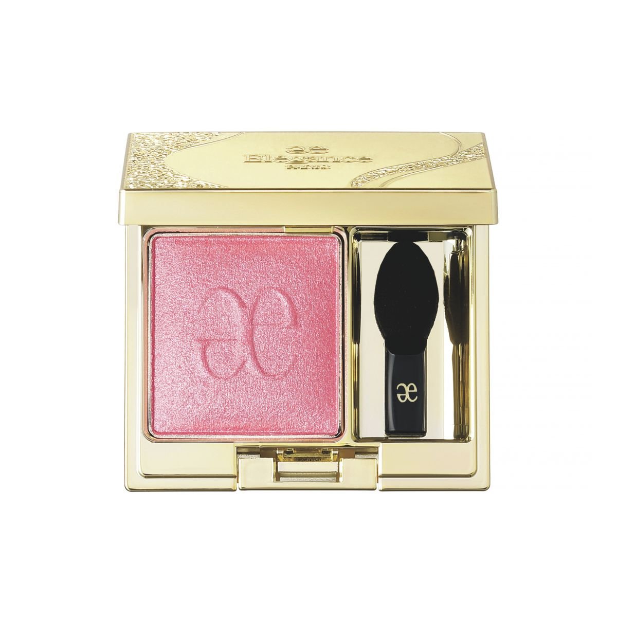 (左)肌の凹凸をなめらかに見せるソフトマットなコーラルチーク。