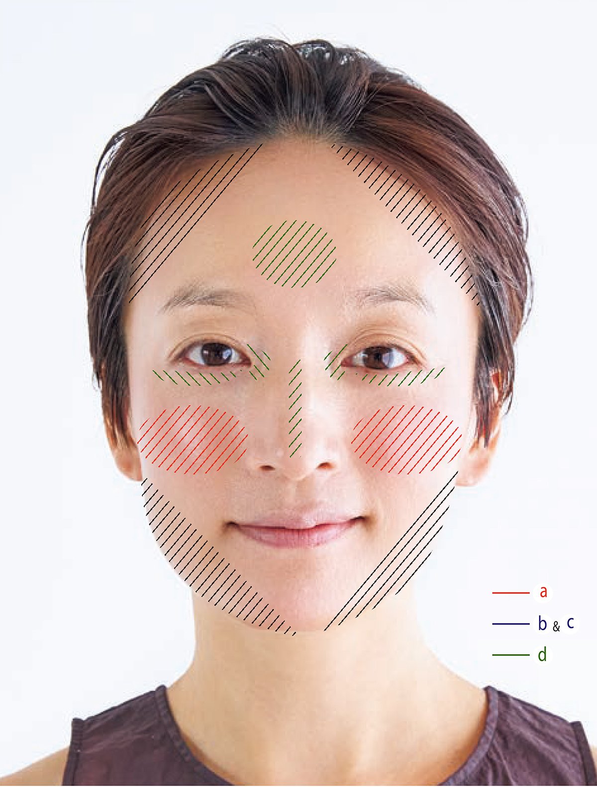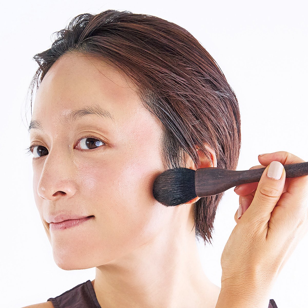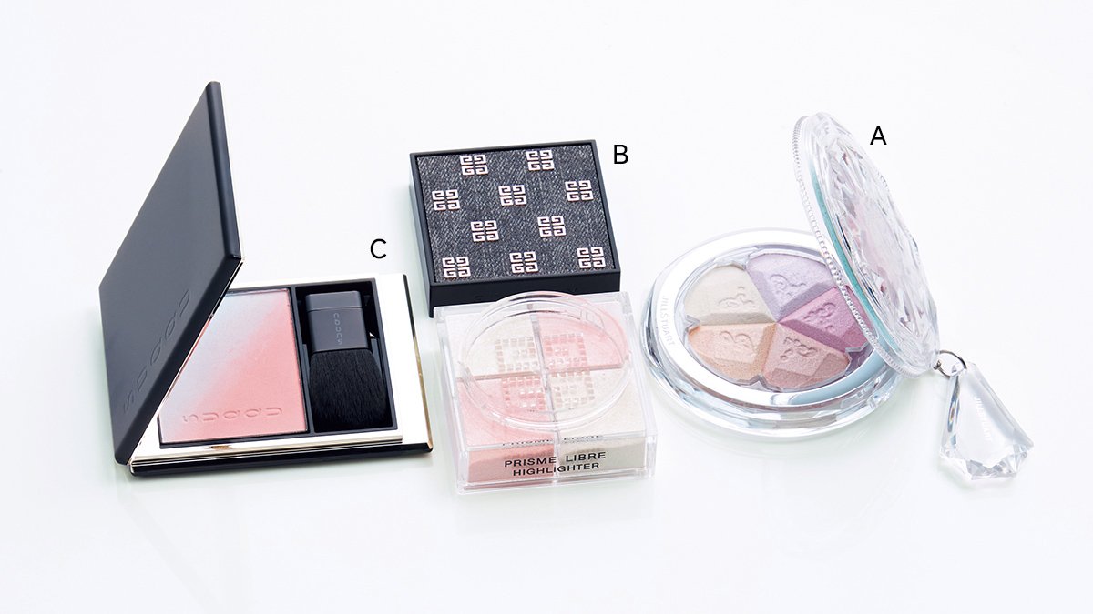 広範囲に入れるチーライトとシェードカラーはもちろん、ピンポイントで使うホワイトフェースカラーも、つけていることがバレては老け見えするだけ。「すべてクリア発色のものを選んで。光が当たる角度によって〝引き締まって見える〟、〝艶がキレイ〟と思われるくらい、さりげなく取り入れましょう」(佐藤さん)