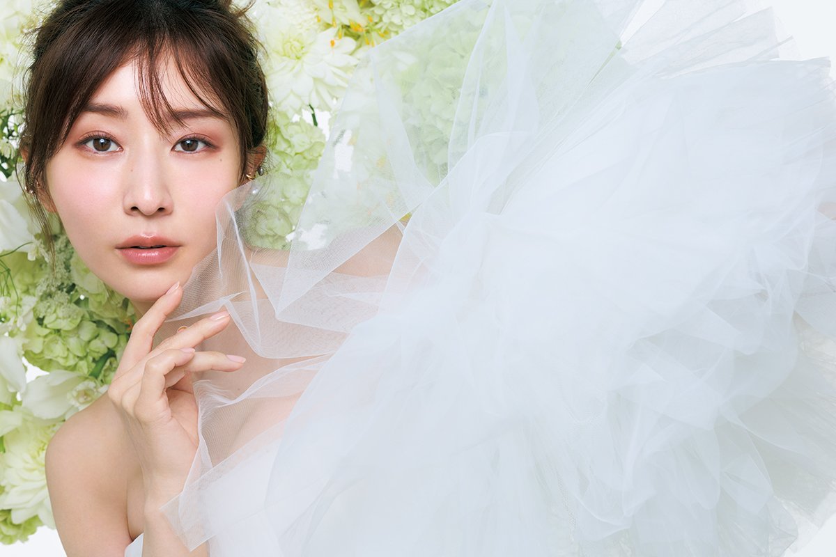 『美的』本誌の田中みな実さんの大人気連載「花が言うには。」。『美的』12月号は田中さんが表紙ということで、連載もスペシャル版! 年齢を重ねてますます鮮度を増し、色とりどりに表情を変えるその様は、どんな瞬間もみずみずしく美しい。清らかな透明感が満ちあふれる「白の花」。田中みな実が纏うのは、ヘア&メイクアップアーティスト中野明海さんが咲かせた、見目麗しい美の表情。繊細で可憐、そしてセンシュアル── その瞬間ごとに新しい輝きを生み出し、視線を集める度に鮮やかに花開いていく。今、この瞬間、彼女自身がひときわ美しい花として咲き誇る。