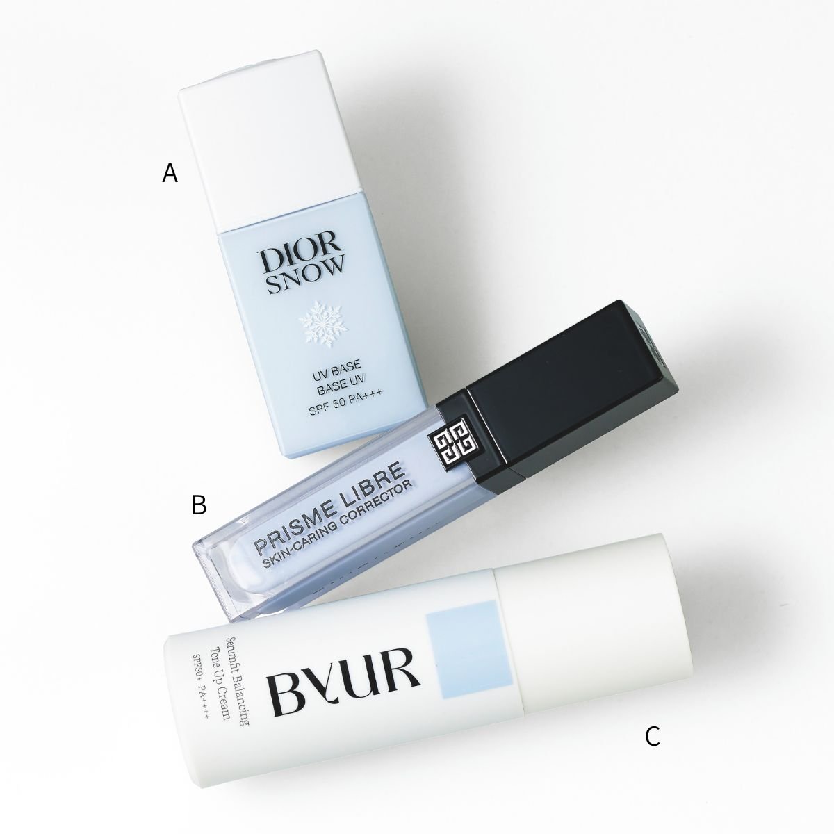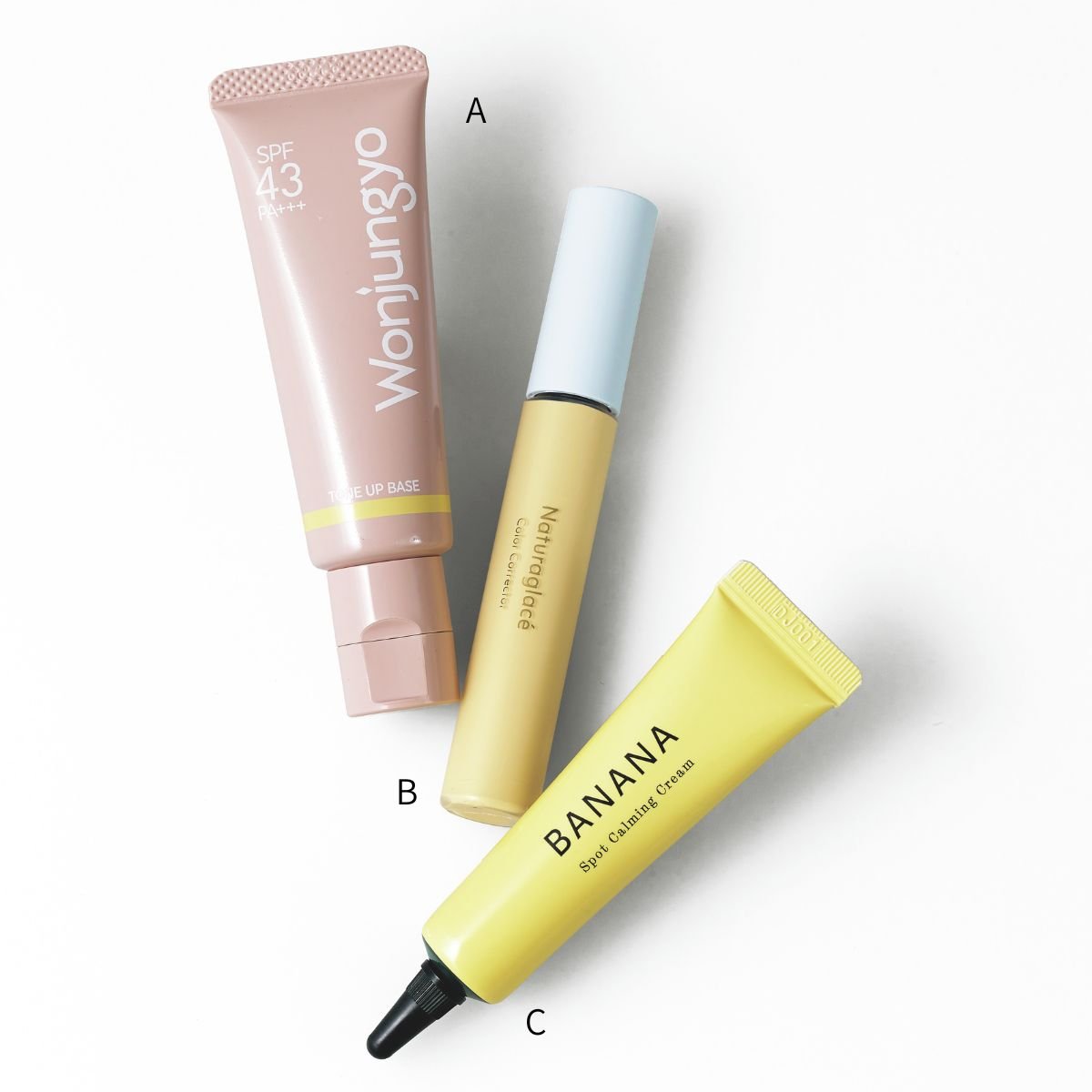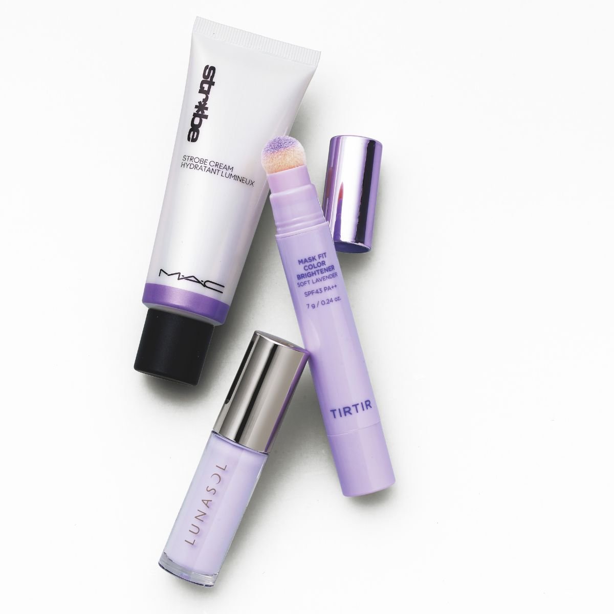 赤みはグリーン、黄くすみはパープル、赤+黄ぐすみはブルー、毛穴はイエローなど肌悩みに的確なカラーを選んで。
