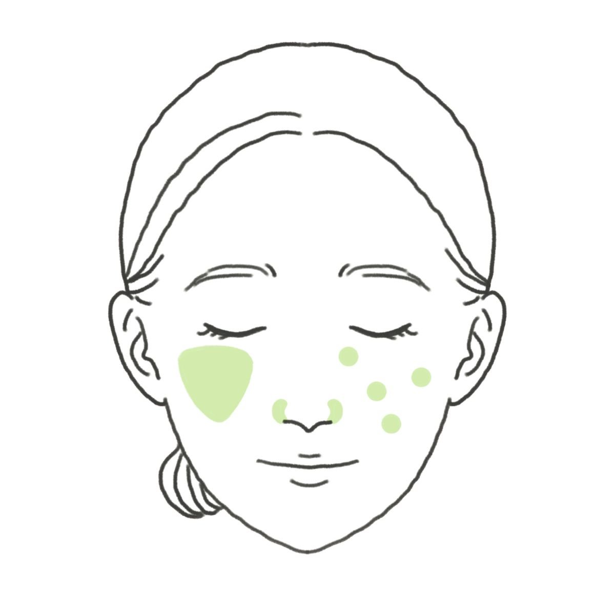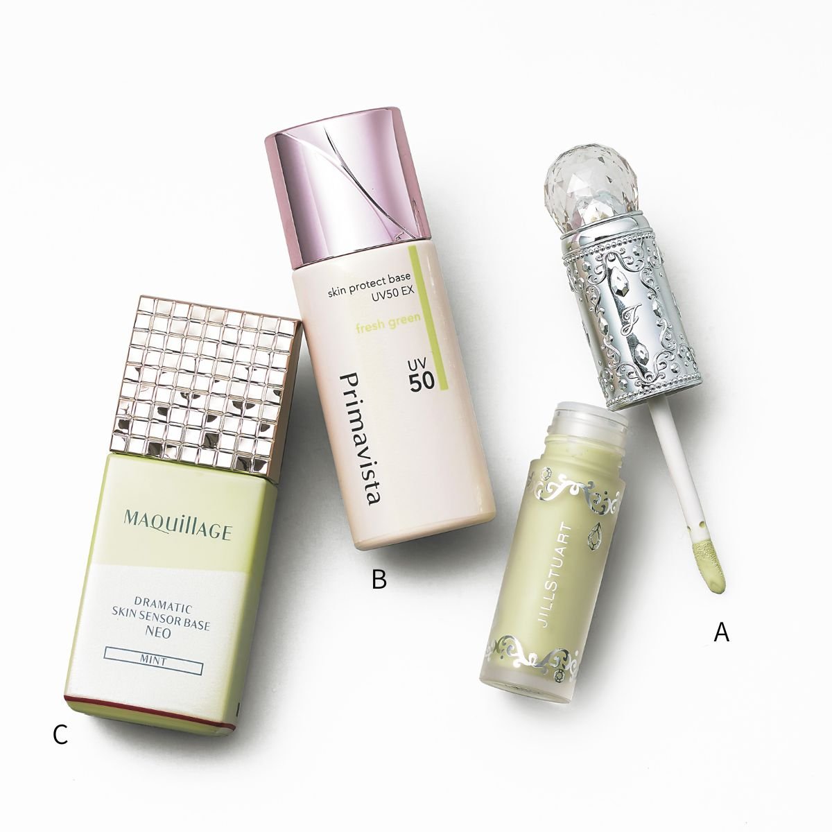赤の補色であるグリーンは、気になる赤みを自然にカバーするのにピッタリ。
