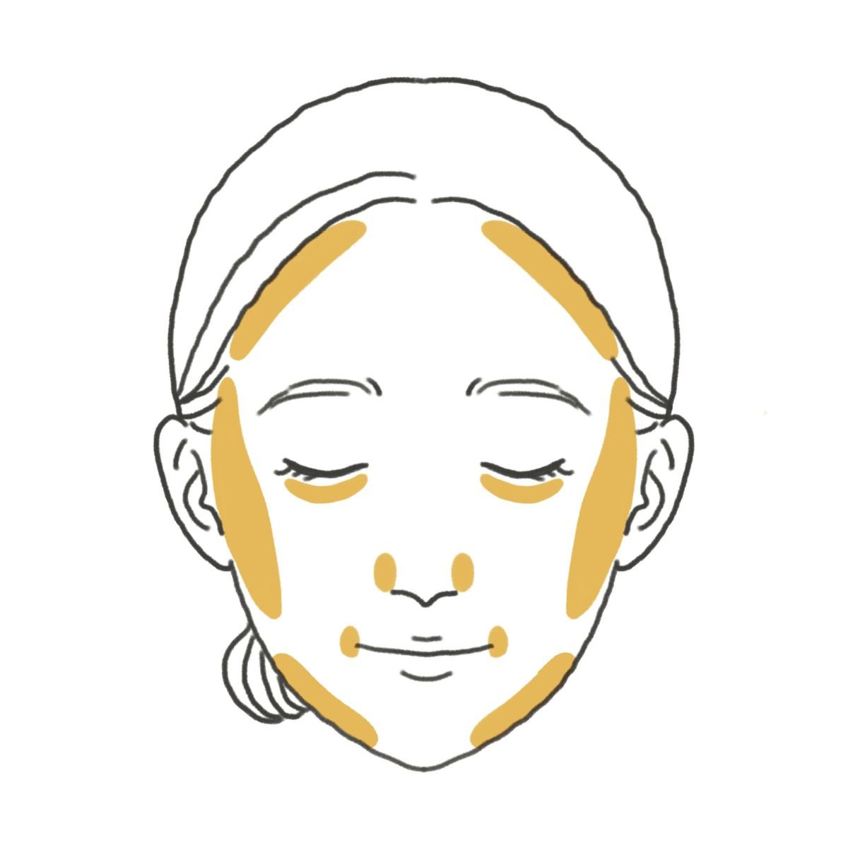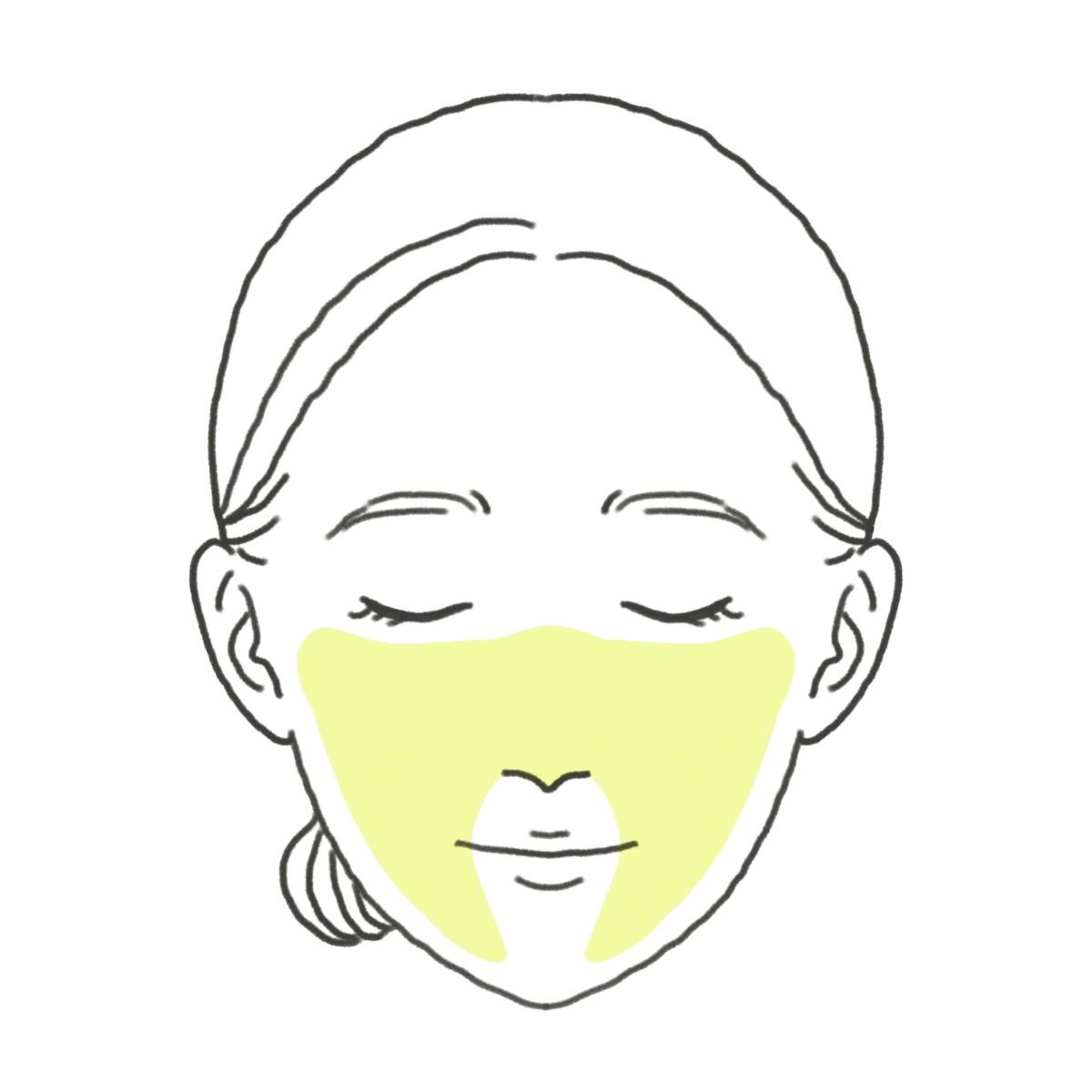 顔全体をクリアな印象にしたい場合は、少し広めに塗るのもテクニック。