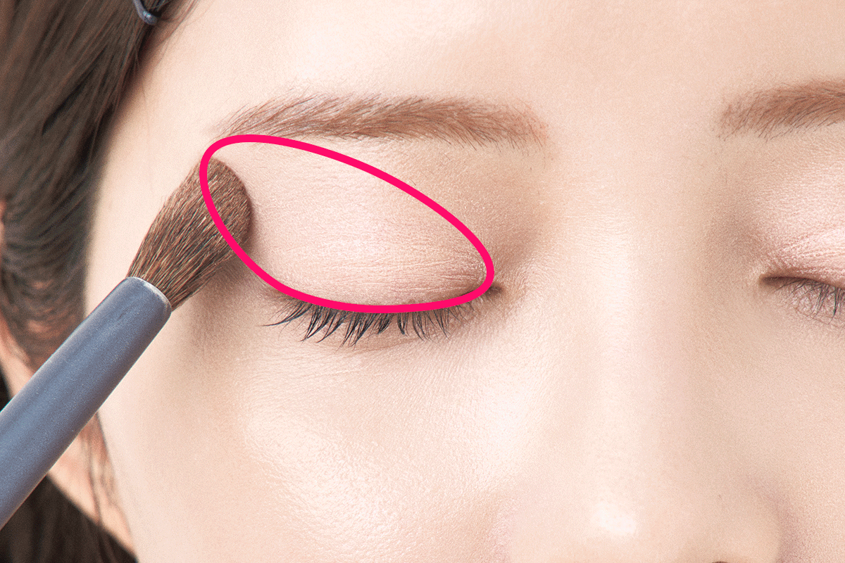 (2)ベージュピンクをアイホールに丸くのせる