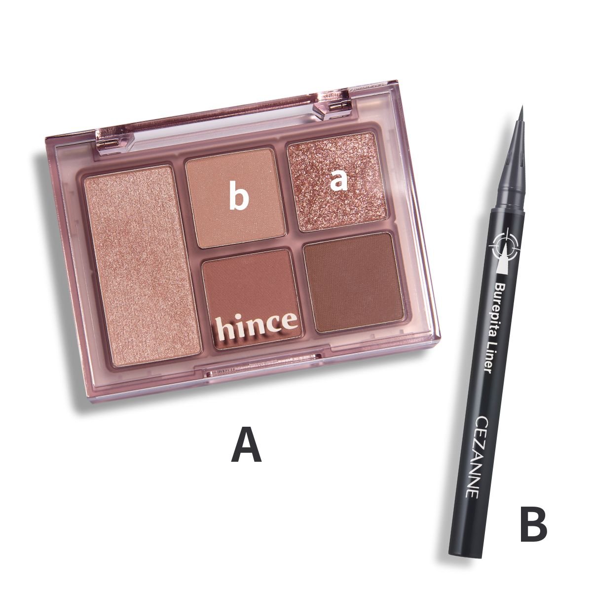 STEP1  Aのラメa を上まぶたの中央にのせてから左右にぼかすように広げる。目頭にも少量のせて輝きをオン。
