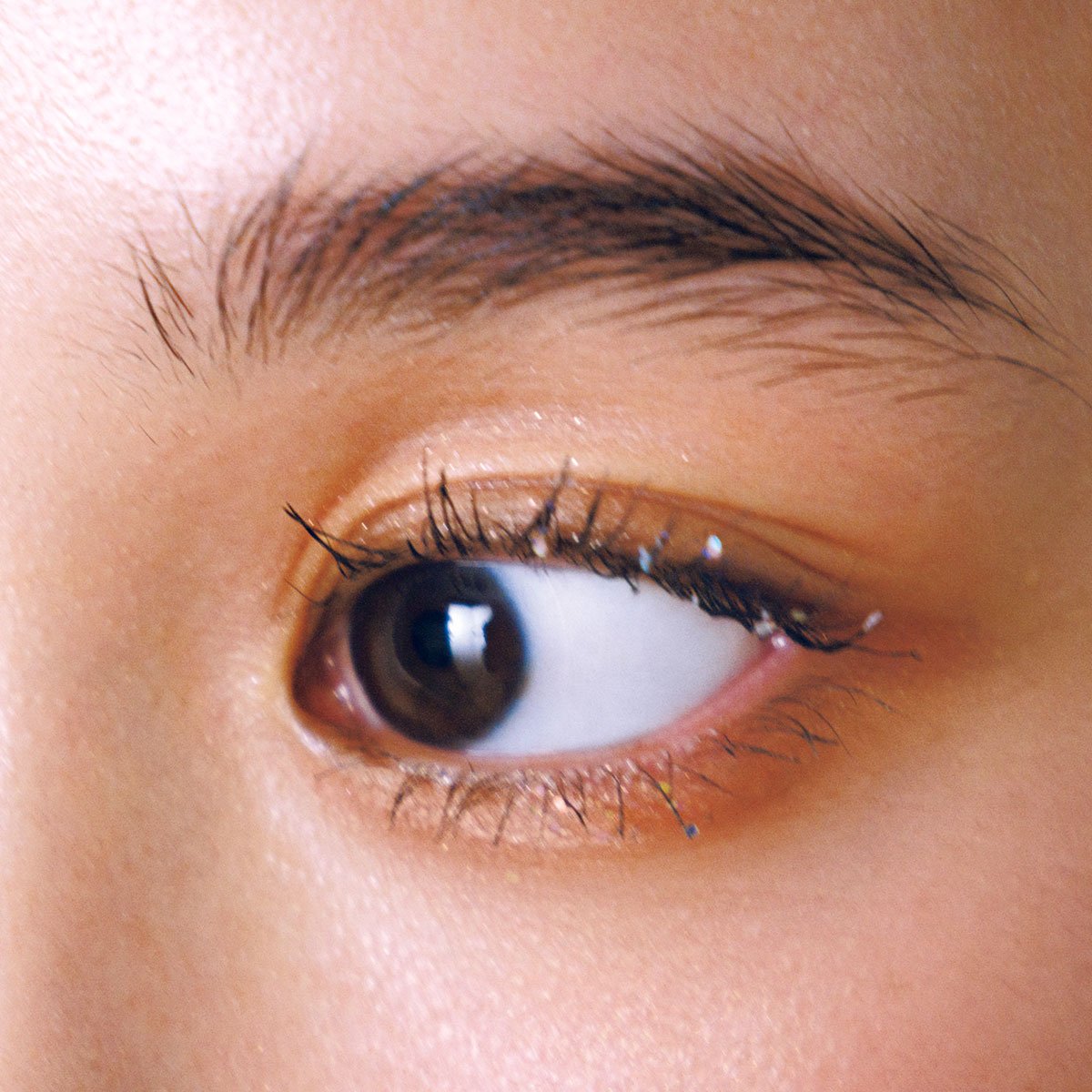 “推し活のようなテンション上げたい!自分をアピールしたい!シーンでは、思いきった輝きマックスな質感にトライ。遠目からも目立ちそうなど派手なグリッターホログラムも無色透明なクリアベースで色味を“レス”すれば、トゥーマッチにならず、地味×派手の絶妙バランスに。上まぶたでも下まぶたでもなく、まつげにつければ瞳に輝きが映り込んで、潤んだようなピュアな目元の完成!”