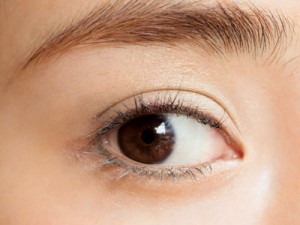 目頭3分の1を残し、目尻に向かってカーキラインを下まぶたに引く。エッジが立ちすぎたら、指や綿棒で軽くぼかしてもOK。