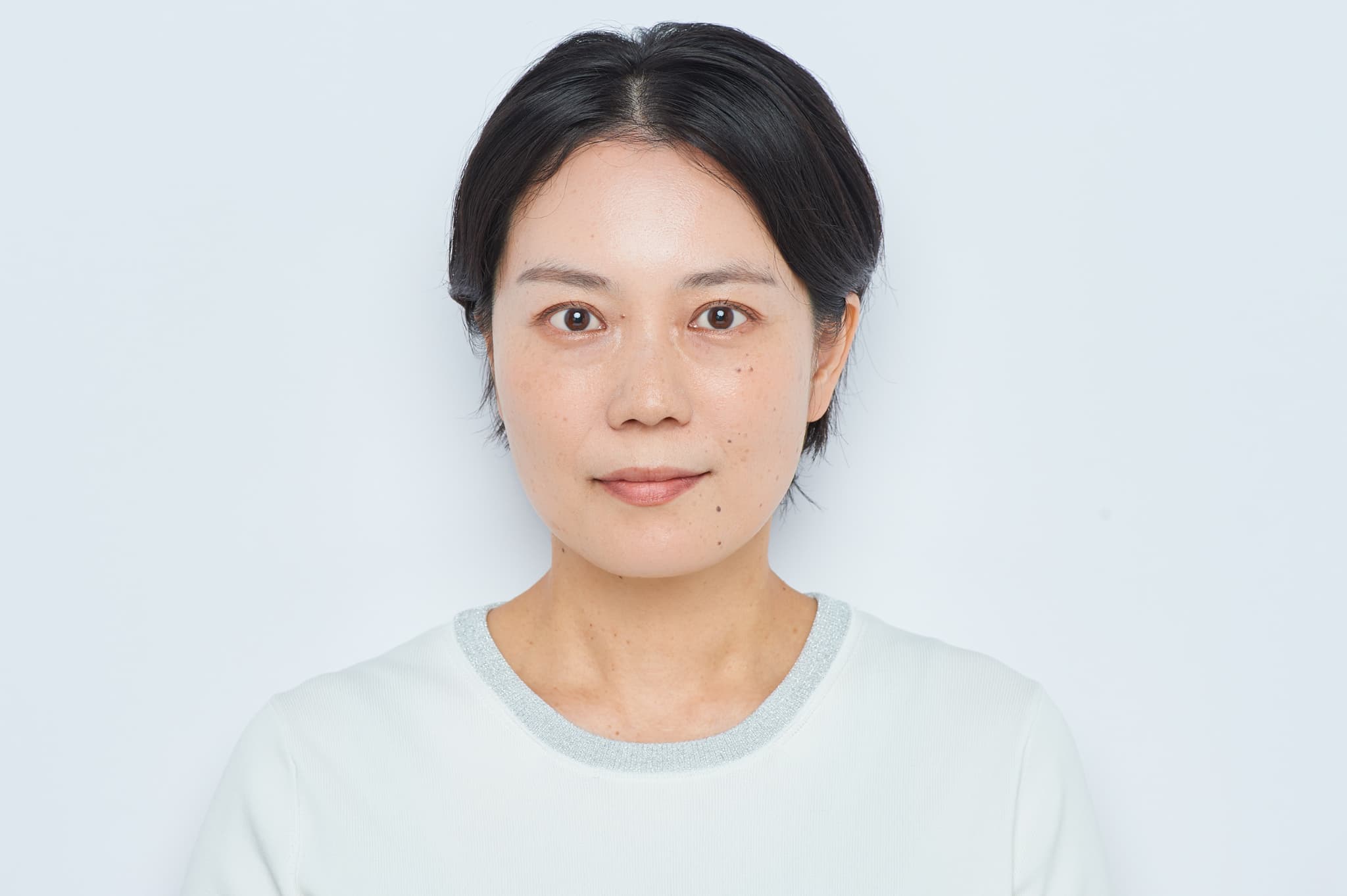 こちらがyumiさんのお直しメイク。ぼんやり感が消えて、ハッとするほど生き生き! 意志を感じる、大人の洗練ナチュラルメイクに。