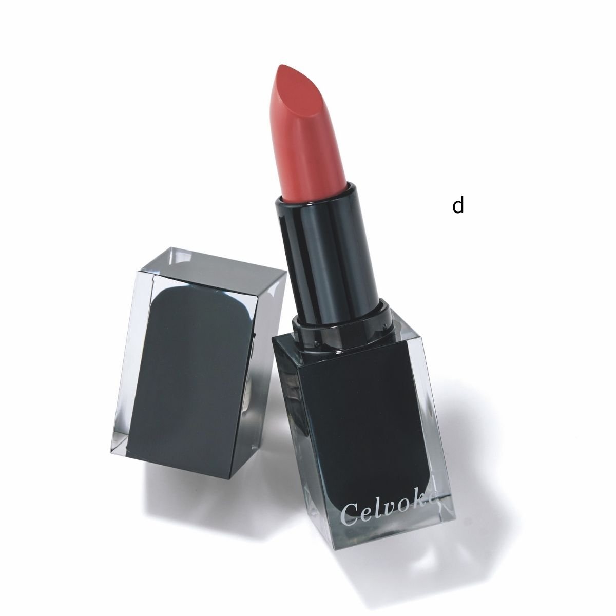 d.ほんのりと透ける軽やかなツヤ発色が、フレッシュタイプによく似合う。ハッピー感としゃれ感を両立するコーラルピンク。