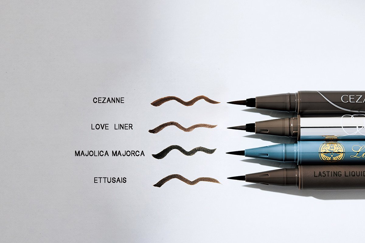 プチプラでもいいものがたくさん見つかるのがアイライナー。にじみにくさは目の形や涙との相性にもよるので、いろいろ試して自分にぴったりの1本を見つけて。お店に行けばテスターでトライもできます。