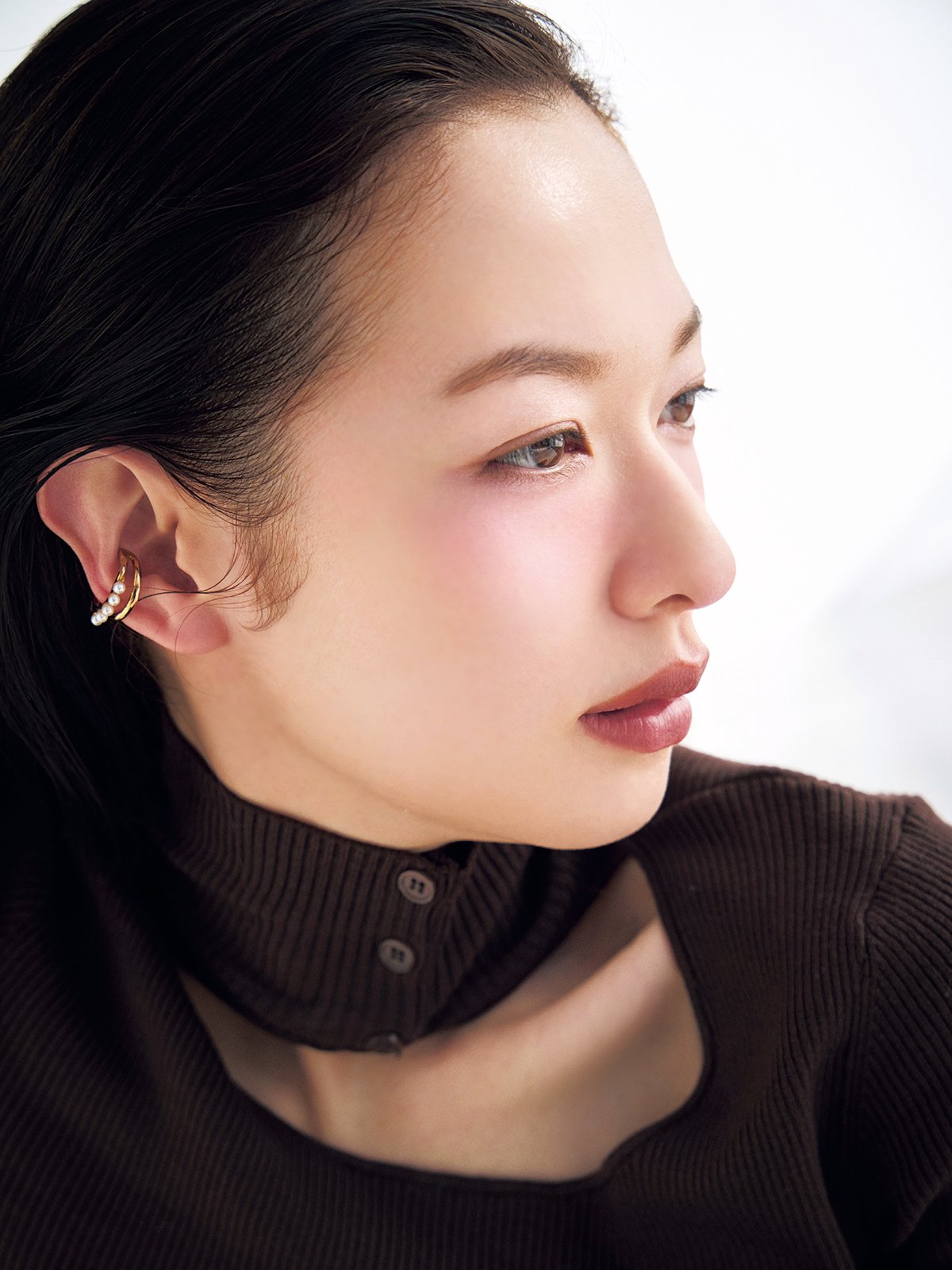 パールイヤカフ¥17,600(アガット) 2連イヤカフ¥15,400(ノジェス) トップス/スタイリスト私物