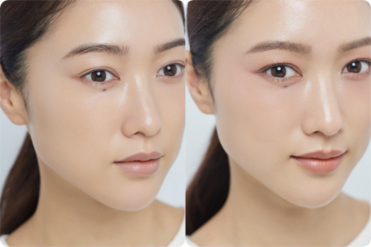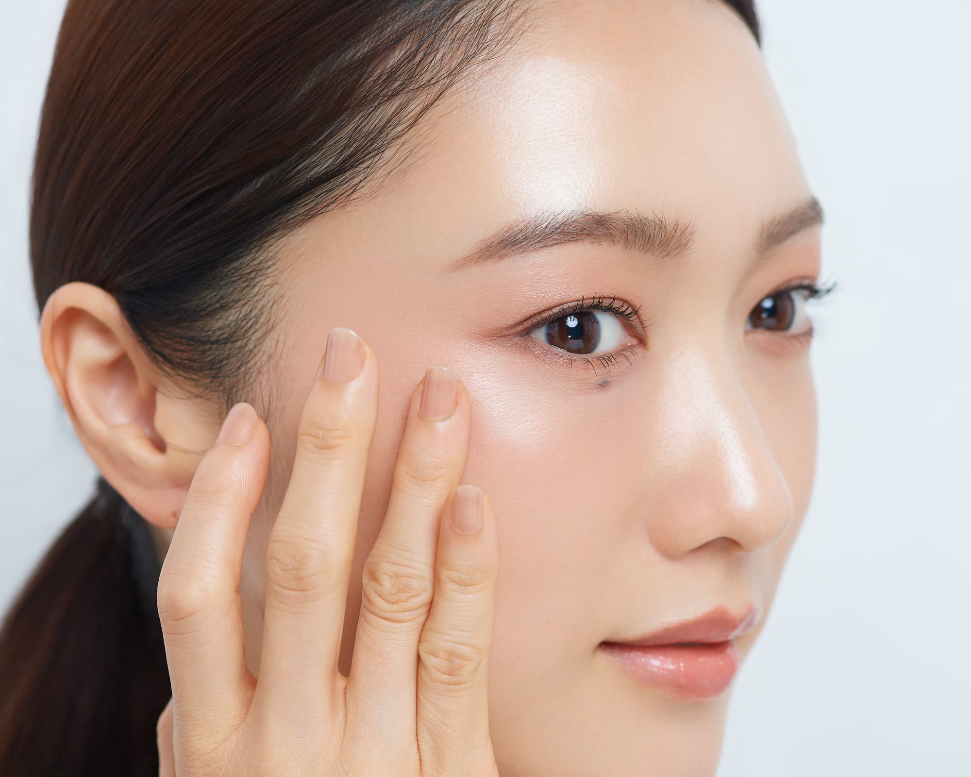 目元と頬を、ひとつの血色で繋ぐだけ