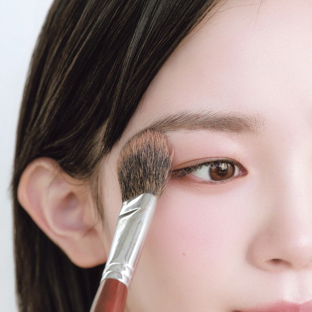 ブラシに残ったBを、目の外側のCゾーンにもふわふわっと優しく纏まとわせるようにのせる。ごく淡く、ほのかに血色を感じる程度でOK。