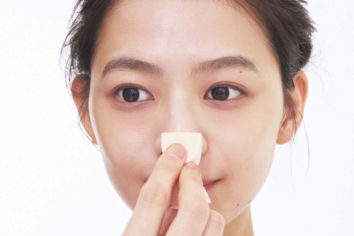 (2)スポンジの余りで鼻の頭もカバー。