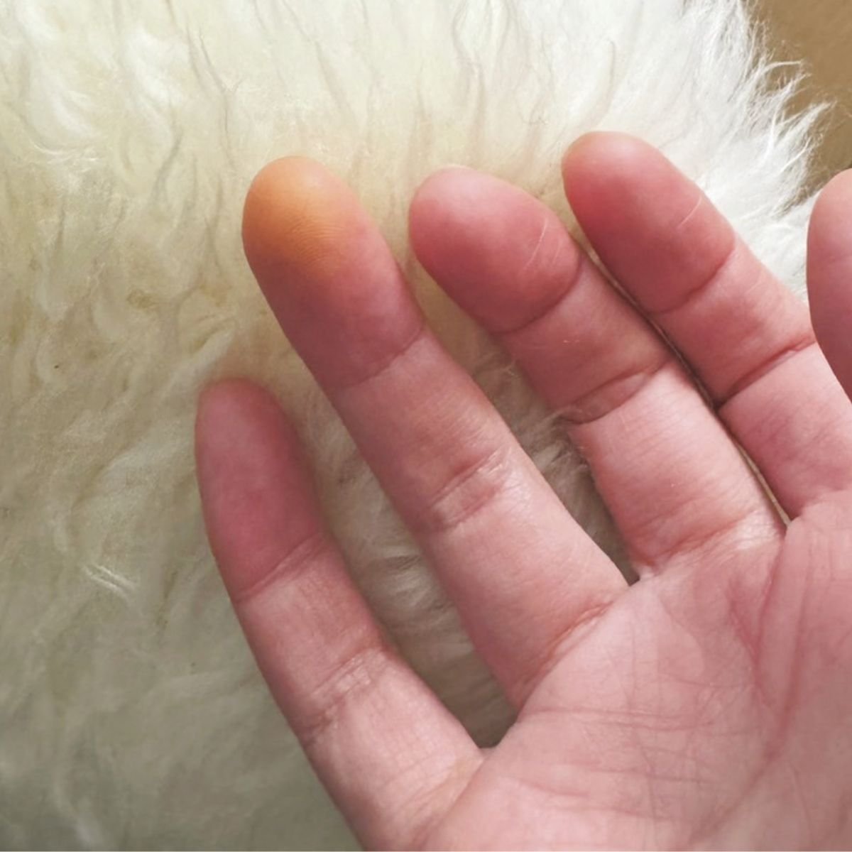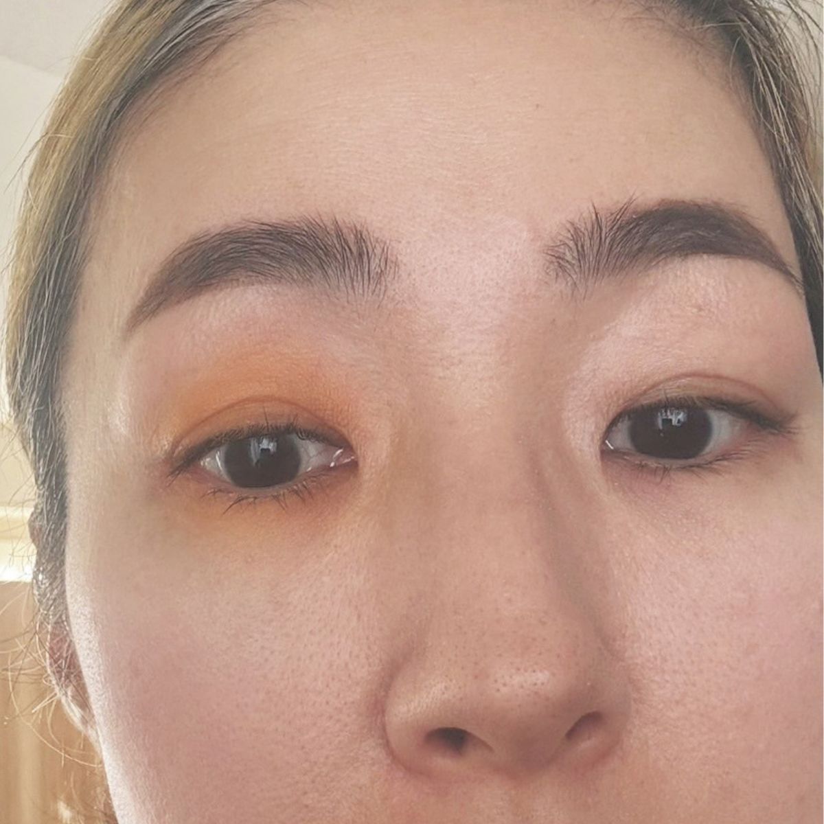 aとbを混ぜてアイホールと涙袋全体に指でオン。目周りの赤みに優しくなじませて。