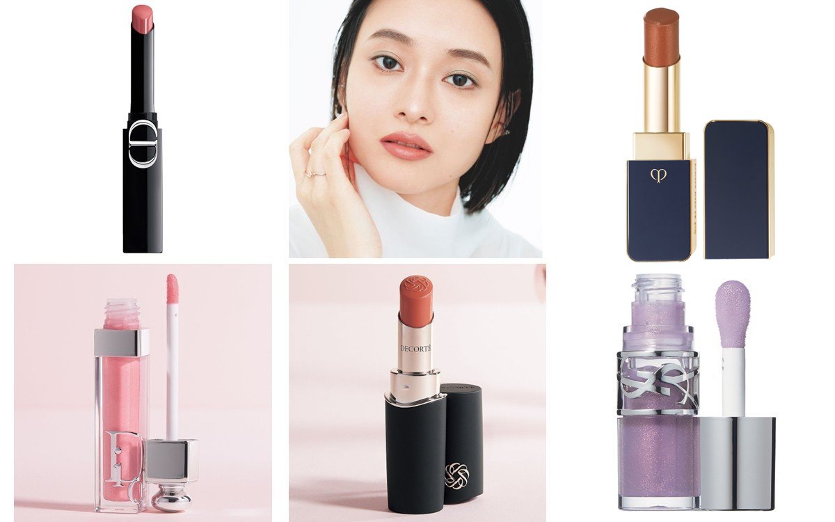 足し算することでバランスよく仕上がるので、艶感やパール感のあるもの、みずみずしくシアーな質感のものを選ぶと、しぼみが目立つ唇に精気が宿ります。逆にセミマットやマットな質感のものは寂しげな印象になりがちなので、つけるときは華やかに見えるように他のヘアメイクでバランスを。