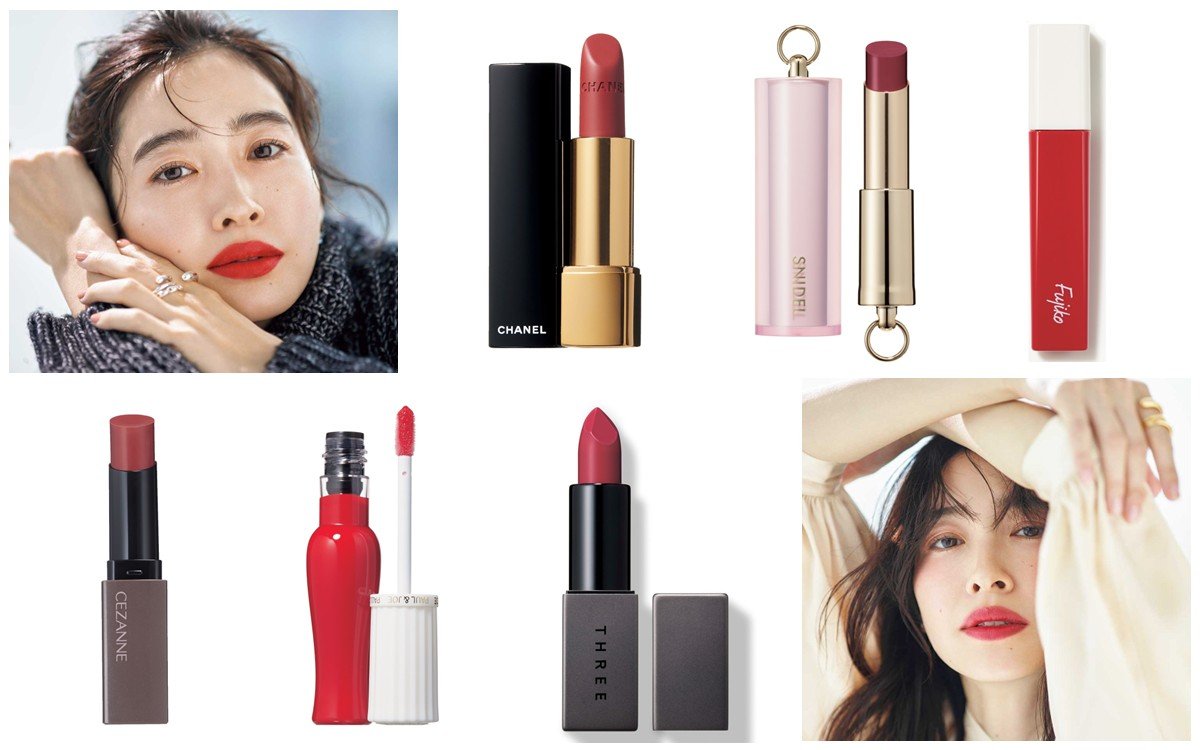 「秋冬のニットやタートルネックに合わせたいシックな赤!モノトーンなどシンプルな服のアクセントになります。色持ちが良くて、グラスに色移りしにくいから、特別なディナーのメイクにもいいかも」(美的エディター まほ)