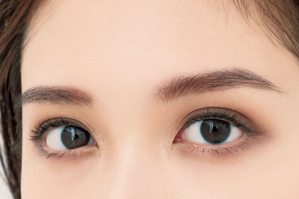 くっきりとした二重の線があるのに色の境目まで明確につけると、濃い線が増えすぎてトゥーマッチな印象になりがち。使う色は2色までと決め、色の境目はぼかして。すると、二重の線も曖昧になり、エフォートレスな旬の美人印象Eyeに。