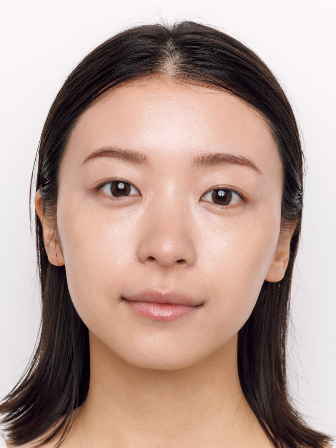 両手のひらの面を頬やおでこなどに優しく押し当ててハンドプレス。スキンケア成分たっぷりで、滑りが良いので、しっかり定着させること。パウダーファンデーションを使う場合は軽くティッシュオフするとGOOD。