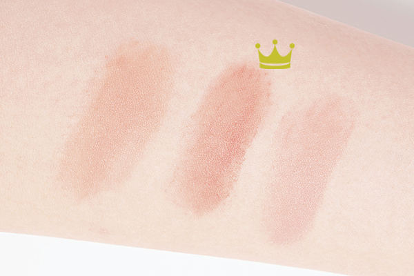 2021年下半期ベストコスメ【チーク部門】にランクインしたカラーと、他の2色をブルベ・イエベの腕に塗布して似合う色を検証。