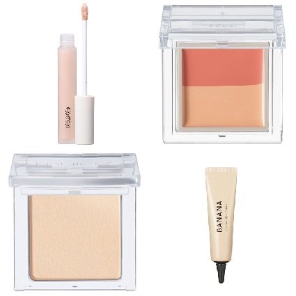 高密着コンシーラー(右下)が薄膜を作り、光効果でシミや色ムラなどを自然にカバー。ハイライト(右上)、シェーディング(左上)、マルチカラー(左下)入りでメリハリ感もばっちり。
