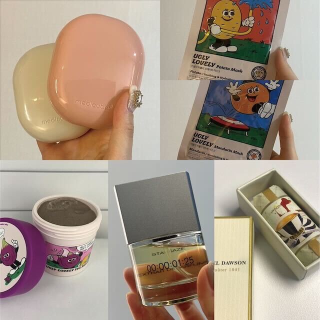 「簡単にメイク直しができちゃうBRAYEは韓国で人気の01を。AFTER BLOWの香水バームは貝殻の形がかわいくて即カバンにつけました!デイジークのアイシャドウも、美容施術の後に軽くメイクしたいときに大活躍しています。」