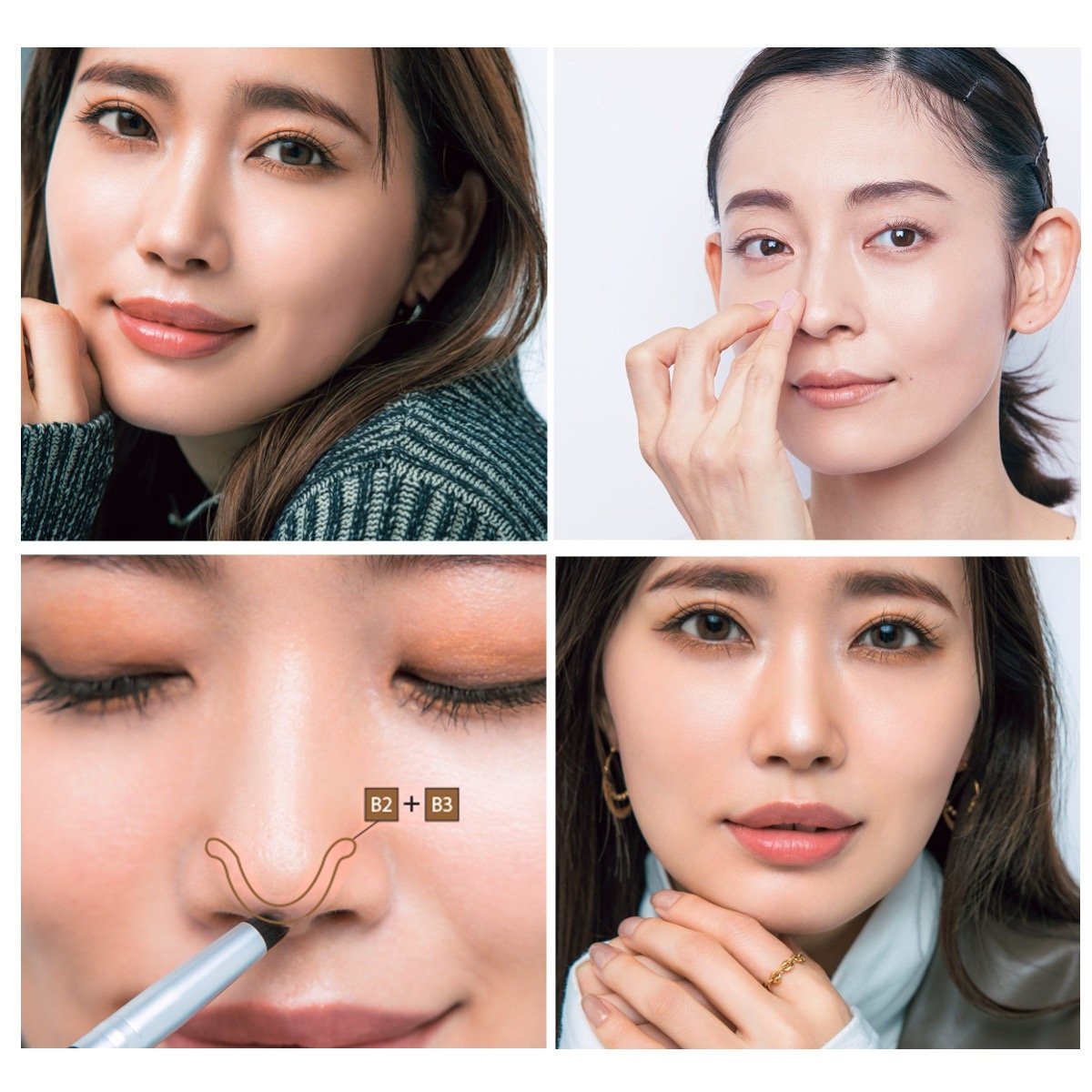 鼻先がつん!と少し上を向いたトレンドの鼻がこちら。横から見ると鼻筋から鼻先までが「ノ」の字状に軽くアーチを描くのが特徴で、ハイライトとコンシーラーを隙間をあけながら入れることでしっかり高さを出しつつも直線的でないアーチ感を表現。チークで高い部分にほんのり赤みをプラスすると、“らしさ”が高まります。