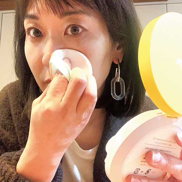 「メイクの上からポンポンすれば、瞬時によれや毛穴を自然にリペアします。ポイントはつけすぎないこと。軽くパフにとったら優しくたたき込むと◎。化粧下地として使うとくずれにくくなります」(大谷さん)
