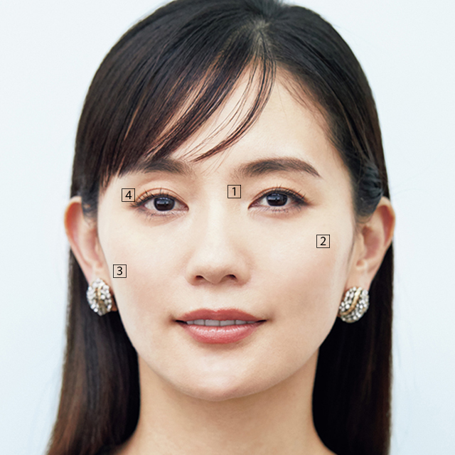 そんな大人の顔をシュッと小さく見せるメイク法を提案してくれたのは、ヘア&メイクアップアーティストのAYAさん。「大人の顔は間延びしがちなので、広がった余白を埋めたり、元々ある立体感を強調するよう意識してメイクしています」。そのテクニックは4つ。どれも簡単でさりげなく、誰にでもすぐできるもの。全部取り入れたのが下の写真で、小顔美人効果絶大! ひとつひとつのテクニックと仕上がりは、別記事で詳しくご紹介します。