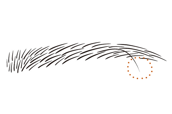 (3)眉頭は上、中間は平行、眉尻は斜め下へ整える。