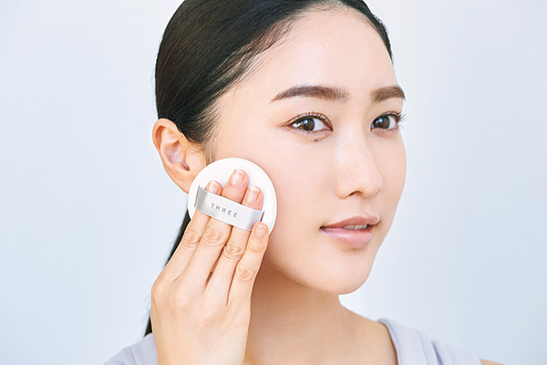「ずばり、“フェースパウダー”です。進化した粉体は粒子が本当に細かく、肌の上で“消える”という程、軽い。厚化粧に見える膜感ゼロなのに、肌補整効果はあって毛穴レスのなめらか感を実現。同時に透明感が高く、ファンデなどで仕込んだ艶が透けるから、パウダーをしてもフレッシュな艶美肌になるんです。しかも、最新の粉体は密着感が高く、マスクとの摩擦とベースメイクのくずれをコートして防ぐサラスベな仕上がり。粉っぽくならず、マスクにもつきにくい…といいことずくめ。この春はどんなベースメイクもパウダーで仕上げると、美しさも格段に進化します」