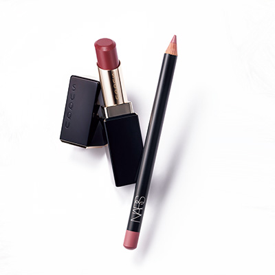 この秋のトレンドカラー・赤茶の口紅は、落ち着きがあって大人っぽキレイなメイクとも好相性! そのエレガントさを保ちつつ、ナチュラルに仕上げるにはなじみ色のリップライナーも欠かせません。上下の唇の中央のみ、輪郭をオーバーにとることで唇に厚みが生まれ、上品な色気がふわりと浮かび上がるように。