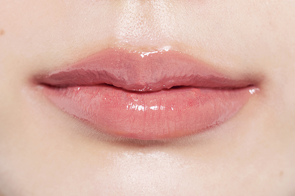 わずかにピンクがかった、温かみのあるベージュ系リキッドルージュ。厚みのあるツヤ膜とコクのある発色が長もち。上品な肉感のある唇が続く。
