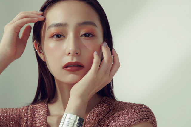 「宇垣さんのつるんと美しい肌とかわいらしい顔だちは、どんなメイクも受け入れてくれる、まさに自由なキャンバス! いろんなバランスを模索しながら楽しくメイクさせていただきました。いちばんのポイントは、アイシャドウ。シックなマットと華やかなパールで、夏から秋の移り変わりを表現しました。」