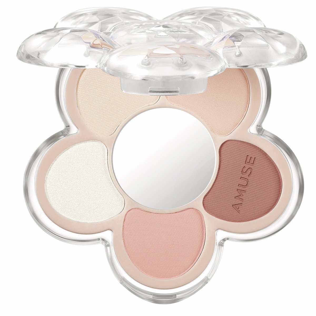 上まぶたには、左上、下、左下の3色を順に重ねる。左上は下まぶたに。左下を涙袋、目頭、鼻筋に。