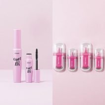 ディープレッドのマスカラを上下まつげに塗り、センシュアルで強さのある眼差しに。
