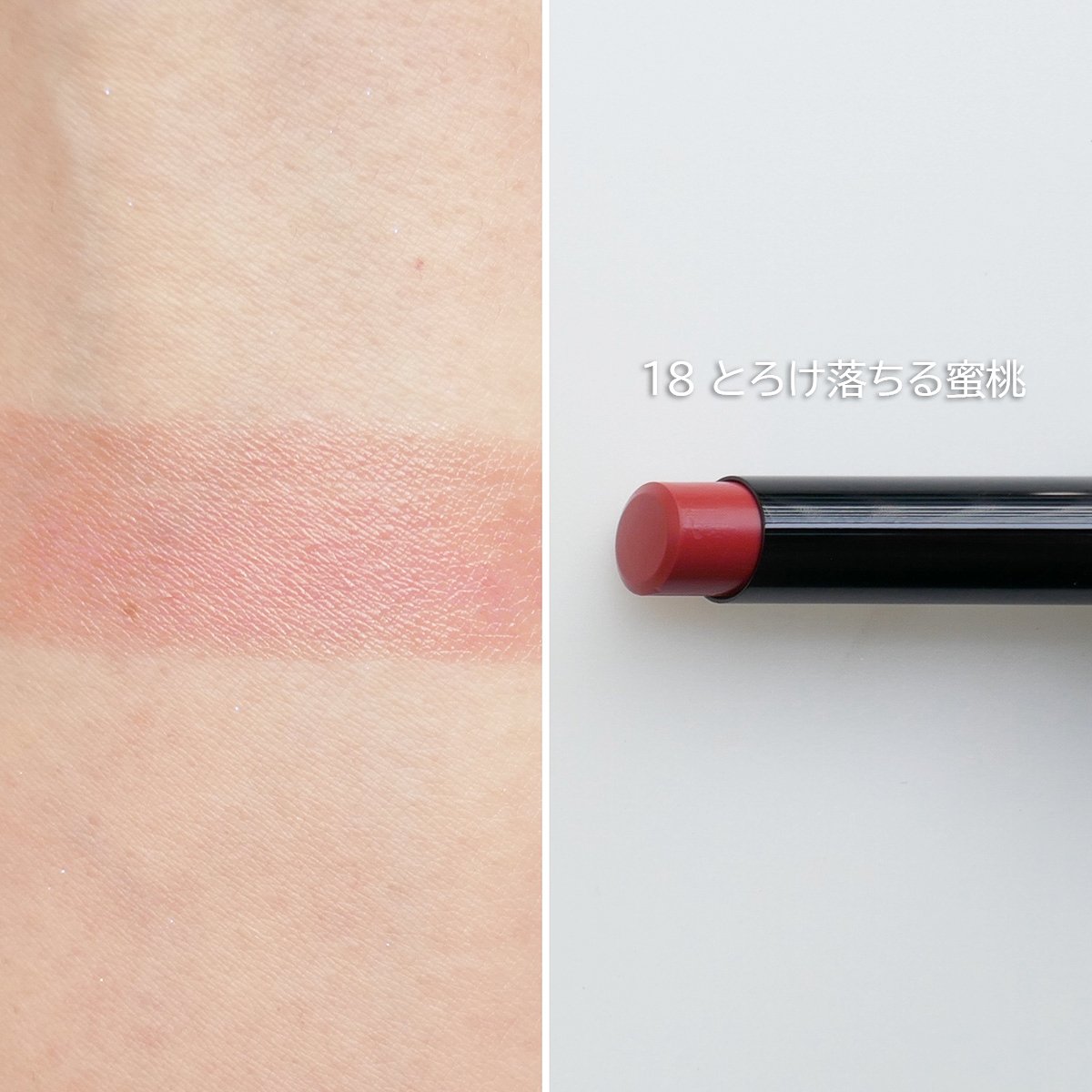唇から蒸発する水分を活用して密着ジェルに変化する独自技術により、長時間の色持ちをかなえる「ケイト リップモンスター」の新色。甘い果実のようなニュアンスピンク系のカラーは春にぴったりな多幸感を表情にもたらします。