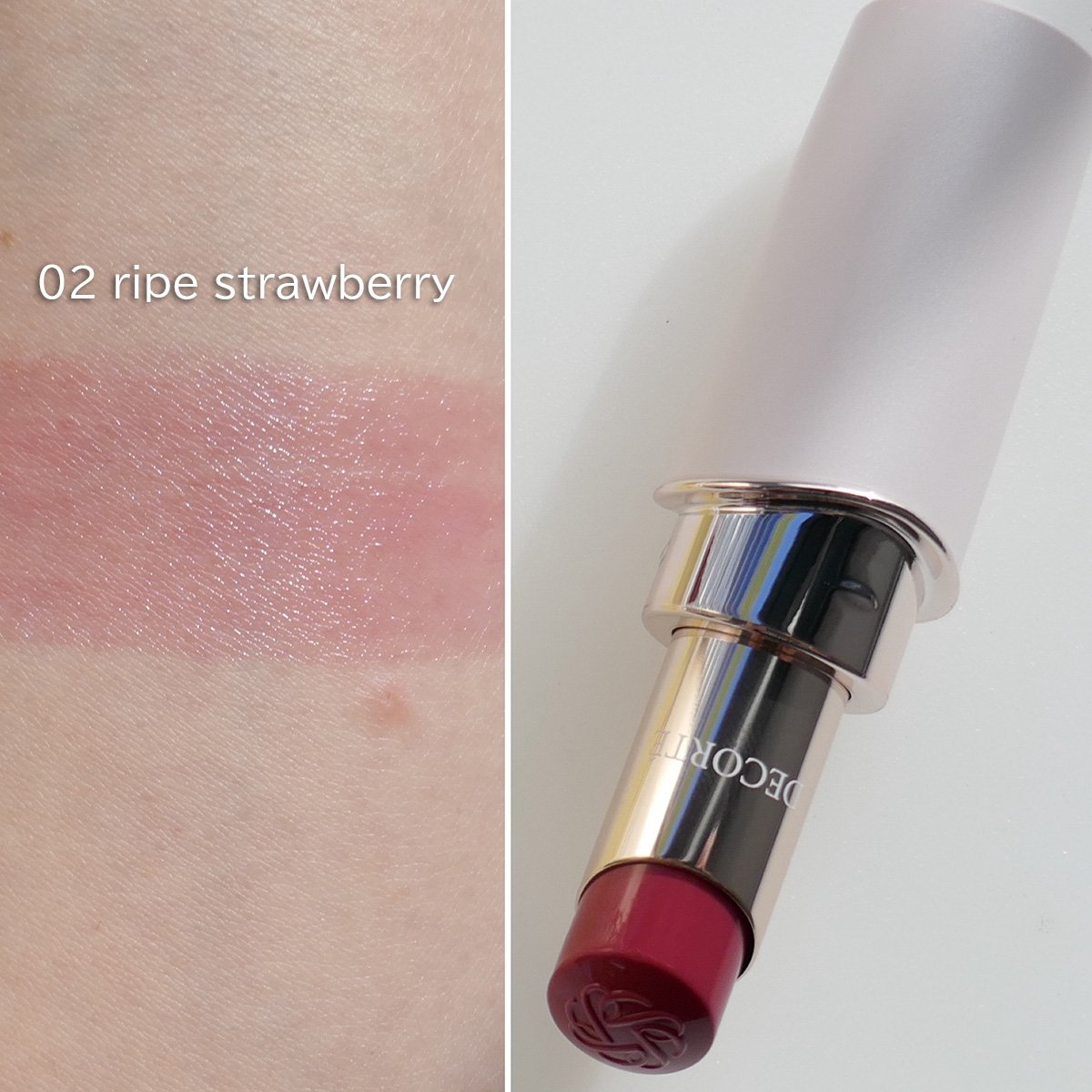 完熟苺のように豊潤なダスティピンク。ほんのり深みがありながらも、シアーな色づきでと肌なじみのよさで、デイリー使いできるカラーです。ちょっぴり大人っぽく仕上げたいときに♪