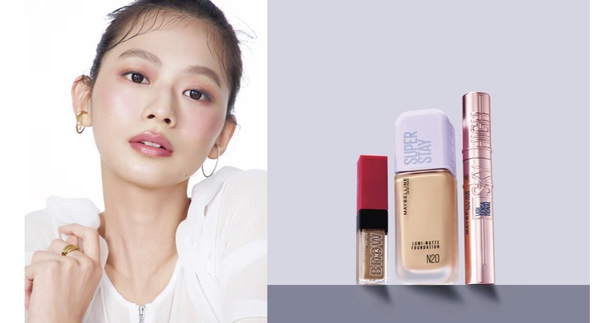 「マスカラと眉マスカラの現品サイズがつくなんてすごすぎます! マスカラはまさにメイベリンを象徴するアイテム。使いやすくてもちもいいから撮影現場でモデルからの信頼も厚いんです。眉マスカラは、眉毛が立ち上がることで強さを表現しつつ、トレンドを押さえたふわっとした発色。リキッドファンデーション(サシェ)は、今どきな肌を簡単に作れる超優秀品。『美的』読者の皆さんに私の推しアイテムを使っていただけるなんてすごくうれしい。メイベリンと聞くと、モード感や強さをイメージする人も多いかもしれませんが、今季は儚げな印象を演出できるアイテムも豊富。大人っぽさの中に可愛らしさもある旬なメイクにぜひチャレンジしてみて」