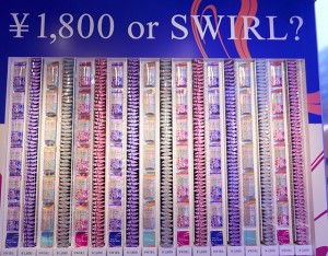 リップを選んだら、次のスペースへ移動…。そこには、壁一面のLIP38℃<+1℃ SWIRL:渦>と、“¥1,800 or SWIRL”というメッセージが!