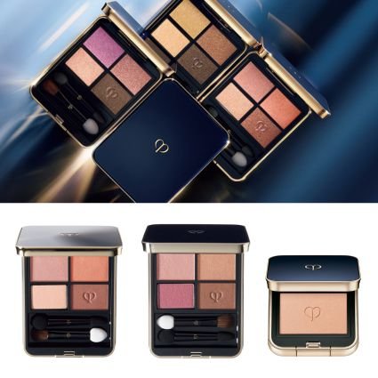 ブランドが誇るスキンケアシリーズに使われる独自成分をカラーメイクに初配合。左下のプライマーはトリートメント成分入りで、まぶたを本格ケアしながら艶めかせる。目元の肌をとことんケアしながら美しい光沢と立体感を生み出し、気品がある華やかな眼差しに。