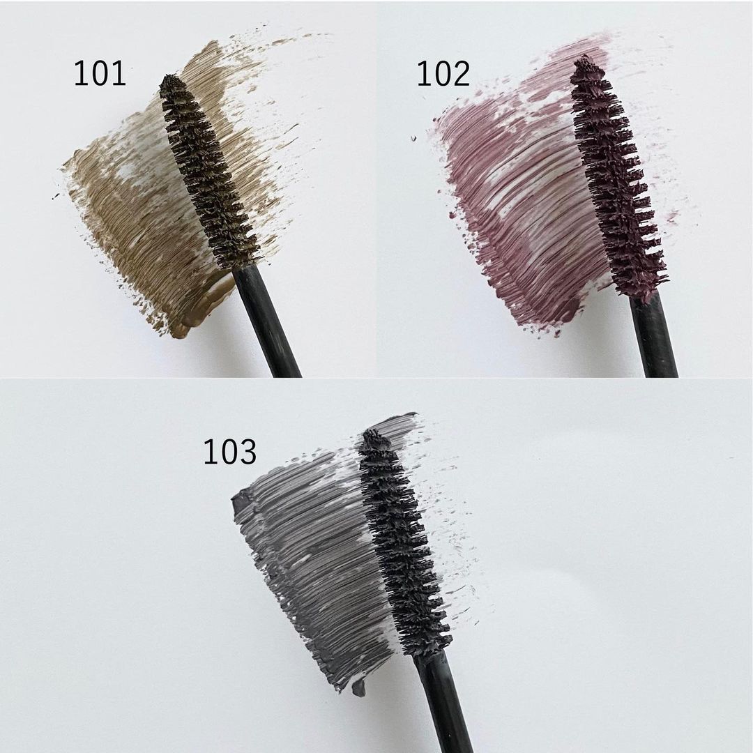 大好評のカラーマスカラに3色が仲間入り。白を含ませたマットなくすみ色が、黒いまつげをしっかりカラーリング。